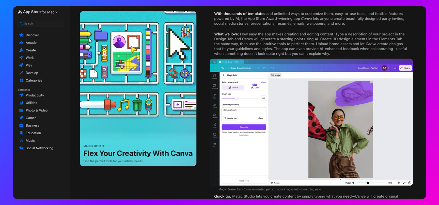 The Web App Store and the App Store on Mac look different, but they both still get the job done.